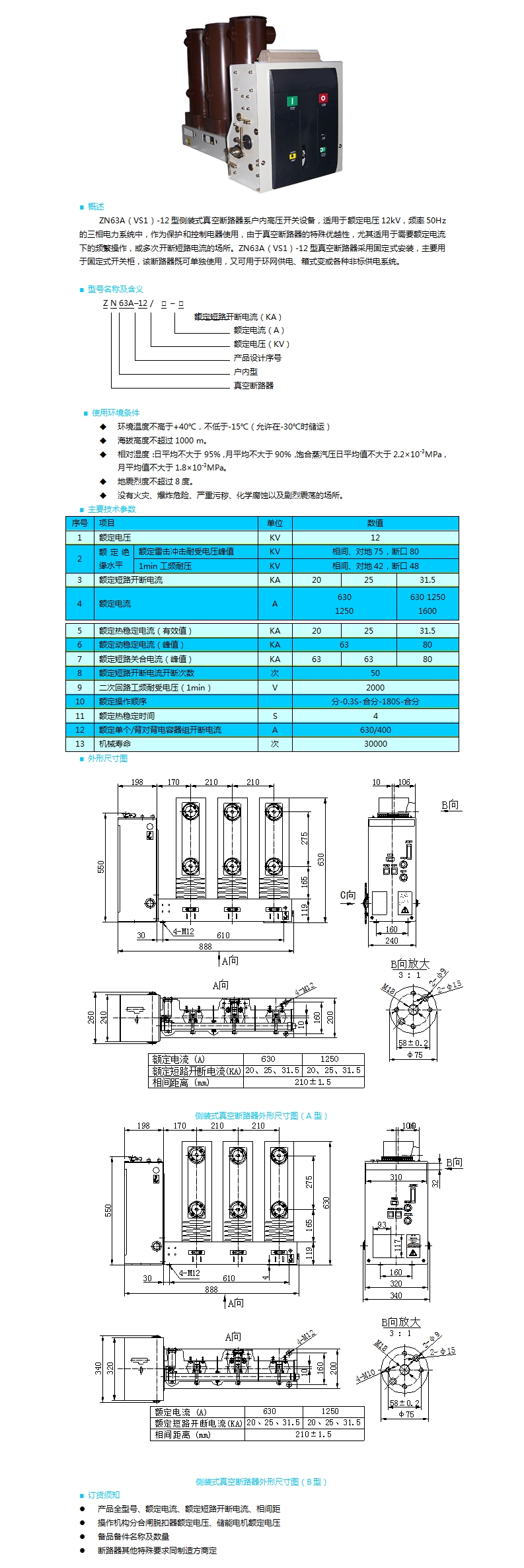 | ZN63A(VS1)-12側(cè)裝式戶內(nèi)高壓真空斷路器 | |